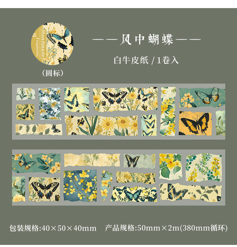 静默花语 50mm*2m 风中蝴蝶 50mm*2m 粉色海岸 50mm*2m 漫游地图 50mm*2m 报纸记事 50mm*2m 手稿时光 50mm*2m セット