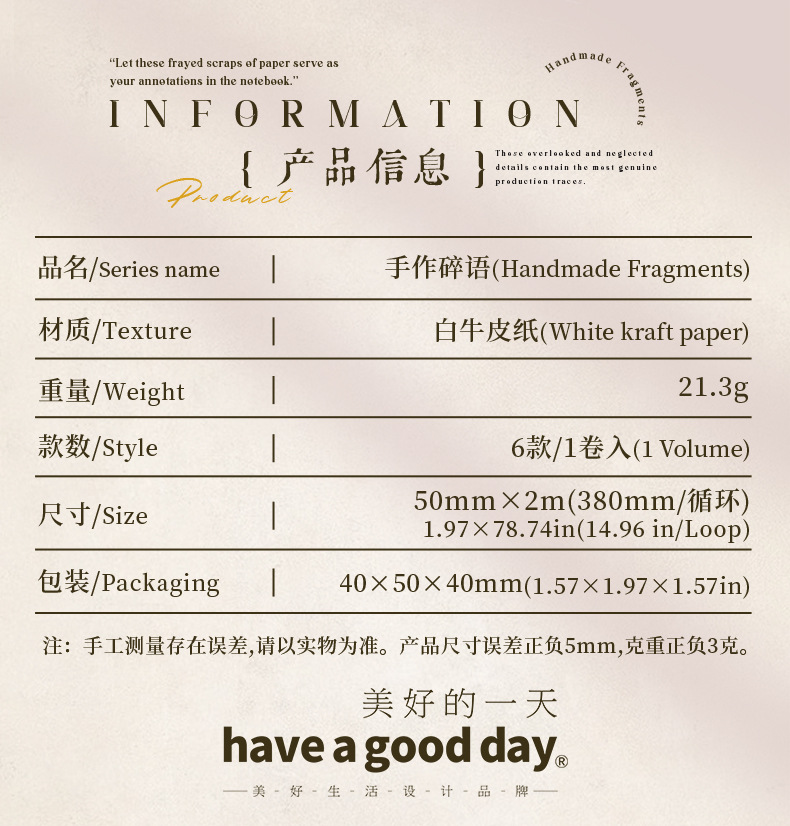 ホームページ>other_category>11.12〆【美好的一天】マステ maskingtape 手作碎语